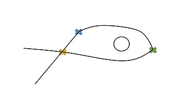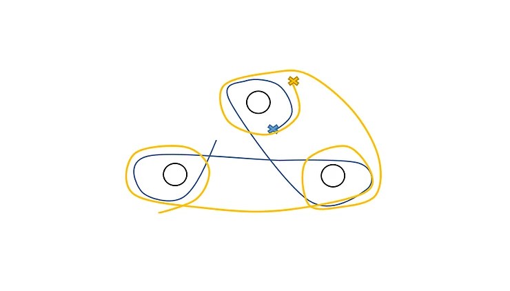 La première drill que je voulais vous partager en est une que j’ai beaucoup utilisé l’an dernier pour améliorer mes virages. Elle est très simple et facile à effectuer, mais très efficace selon moi. Elle m’a permis de tourner mes barils beaucoup moins larges et d’encourager mon cheval à travailler avec ses postérieurs. Il est préférable de commencer à faire cette drill au pas, et de la faire au trot ensuite, mais de ne pas excéder le lope. Il s’agit simplement d’entrer dans son virage, en s’assurant que son cheval soit incurvé vers le baril (au X bleu). On peut faire un arrêt à ce point pour encourager le cheval à s’asseoir et à travailler avec ses postérieurs quand on sera à plus grande vitesse éventuellement. Ensuite, on s’arrête et on fait un pivot de 360 degrés sur le X vert, qui représente le point culminant du virage. Dans l’exemple ci-dessus, le premier baril se tourne vers la droite, donc on fait le pivot vers la droite aussi, pour continuer le mouvement. Ensuite, on complète son virage en déplaçant son cheval pour être face à l’entrée de son prochain baril.