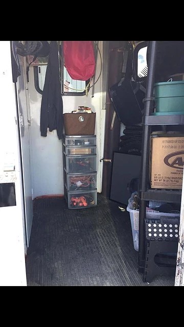 Après cela, le temps est venu de s’organiser pour le tack et le living. Pour moi, l’important est de maximiser l’espace, puisqu’il est strictement impossible de voyager léger quand on part en shows, surtout quand on est plusieurs barrel racers à partir ensemble! Je vais insérer des photos de l’organisation de mon trailer bumper, j’avais ajouté des étagères, des crochets, un meuble à tirois et une corde à linge homemade pour nous permettre de transporter toutes nos affaires en étant capable de marcher dans la sellerie. Voilà ce que ça avait donné :