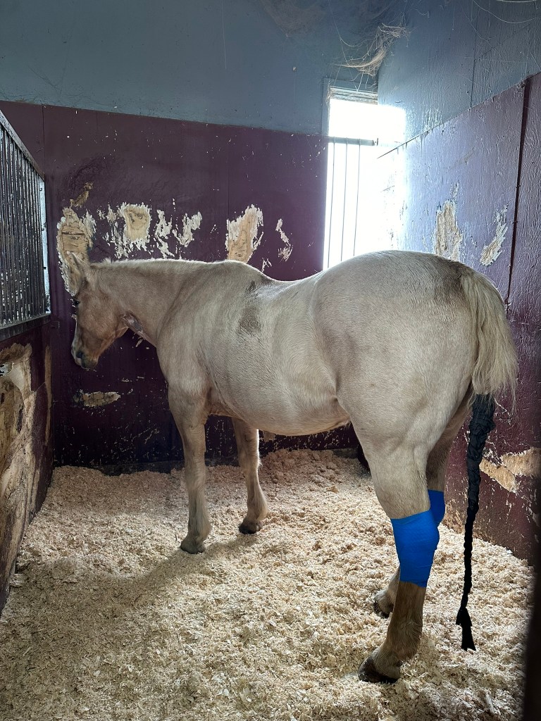 Sur les radios de ses jarrets, on a pu constater qu’il avait de l’arthrose. Rien d’incroyable pour un cheval de son âge qui fait des barils depuis bien des années maintenant, mais tout de même pas rien. C’est là que j’ai dû choisir quel traitement faire, et après ayant pesé les pours et les contres (et consulté mon compte de banque), j’ai décidé d’y aller avec le Pro Stride. Malgré le coût plus élevé, je ne voulais pas commencer tout de suite des infiltrations de cortisone qui pourraient dégénérer plus le cartilage, compte tenu que mon cheval a 16 ans et a encore bien des années devant lui. Je ne veux pas qu’il compétitionne jusqu’à ses 25 ans nécessairement, mais je veux qu’il soit confortable et sans douleur aussi longtemps que possible.